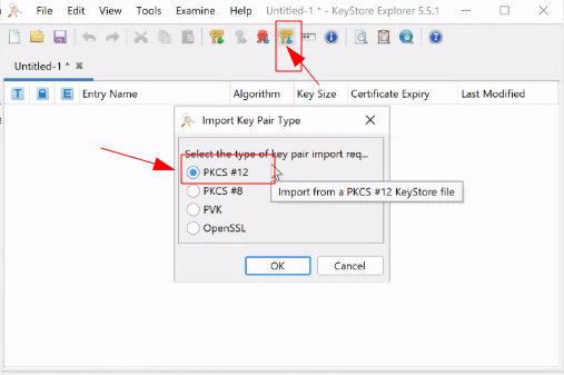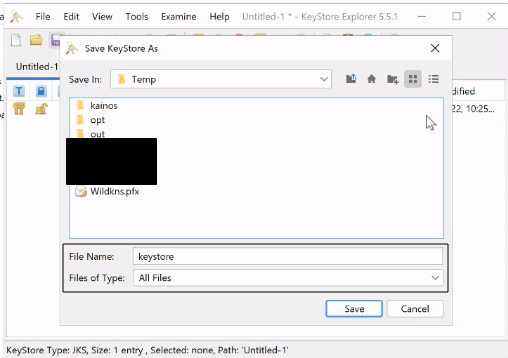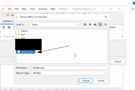 keytool -importkeystore -srckeystore Wildkns.pfx -srcstoretype pkcs12 -destkeystore keystore -deststoretype JKS